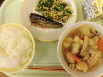 3月5日(火) 今日の給食 公開日 2024/03/05 更新日 2024/03/05 お知らせ・お願い 今日の献立は、ごはん、いわしの土佐煮、納豆和え、親子煮、牛乳です。 親子煮は、鶏と卵、じゃがいもなどの入った煮物です。甘塩っぱく、ごはんと一緒に食べるとまるで親子丼です。 納豆和えは、細かくきざんだたくあんと納豆がとてもよく合います。これもごはんによく合います。 今日もおいしくいただきました!