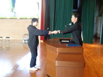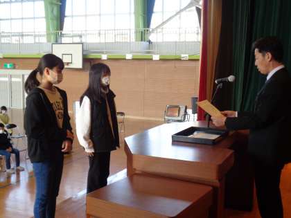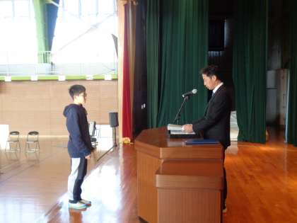 その後、6年間の皆勤賞の表彰をしました。卒業まで一度も休まず、健康に過ごしていた2名が賞状を受け取りました。