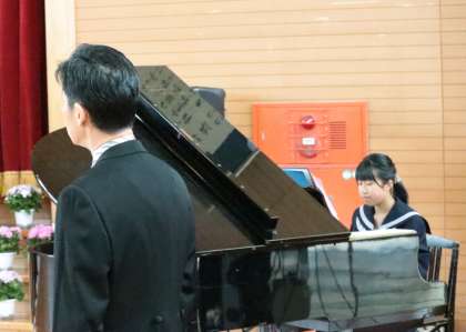 練習してきた成果を発揮し、きれいな歌声を響かせました。ピアノ伴奏も堂々として、美しい音色を響かせました。