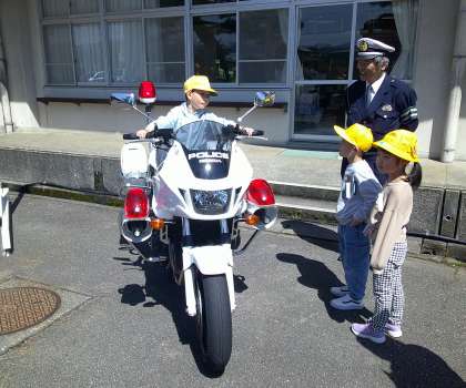 1年生の交通安全教室がありました。道路の正しい歩き方や横断歩道の渡り方のお話を聞き、「止まる」「見る」「聞く」が大切であることを学びました。その後、実際に道路を歩いて、学んだことを確かめました。最後に、白バイに乗る経験もさせていただき、子供たちは喜んでいました。ご協力いただいた皆様、ありがとうございました。