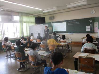 1組は国語、2組は社会の授業を行いました。一生懸命勉強に取り組む子供の姿が見られました。