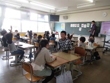 3年生 楽しい英語活動 公開日 2024/04/23 更新日 2024/04/23 3年生 3年生になって新しい学習「外国語活動」が始まりました。今日は、国名前と「こんにちは」の挨拶の言葉を練習しました。大きな声で繰り返し、楽しく取り組みました。