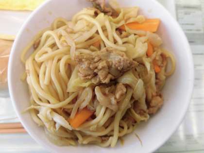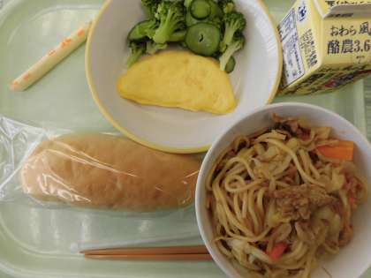 焼きそばは、子供たちに人気のメニューの一つです。朝の時間から「ぼくは、パンにはさんで、焼きそばパンにして食べよう」と話してくれる子供もいました。今日もおいしくいただきました!