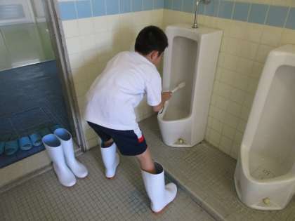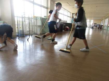 3年生 自級清掃 公開日 2024/04/26 更新日 2024/04/26 3年生 4月は自級清掃に取り組んでいます。3年生は、教室のほかに、トイレやワークススペース玄関などを受け持っています。時間になると、自分の分担を確認して、掃除に取り組んでいます。