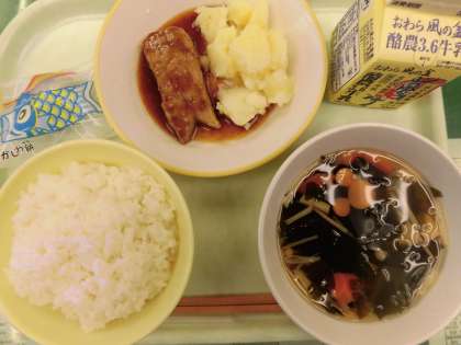 5月1日(水) 今日の給食 公開日 2024/05/01 更新日 2024/05/01 今日の給食 今日は「こどもの日」献立です。ごはん、鯉のぼりハンバーグ、こふきいも、若竹汁、柏餅、牛乳です。 鯉のぼりの形をしたハンバーグが、子供たちに大人気でした。若竹汁には、かわいい形に型抜きされたニンジンが浮かんでいます。今日もおいしくいただきました!