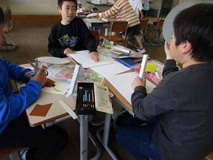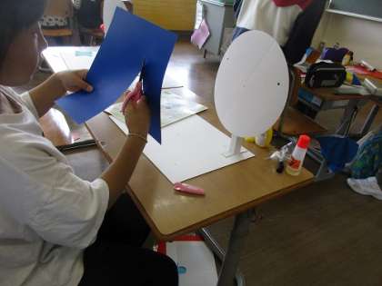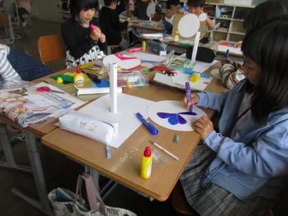 図画工作科で「わりピン ワールド」に取り組んでいます。わりピンで紙と紙をつないで、そんな動きができるのか考えながら作り始めました。