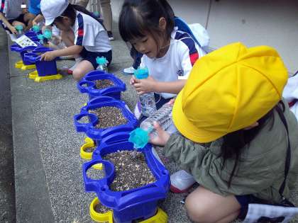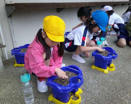 1年生 アサガオの種まき 公開日 2024/05/09 更新日 2024/05/09 1年生 アサガオの種をまきました。土に穴をあけ、丁寧に種を入れました。これから、水やりをがんばって、きれいなアサガオが咲くようにしていきます。
