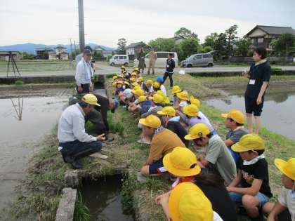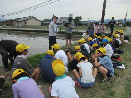 田植え教室が行われました。 田植えのポイントを教えていただきました。
