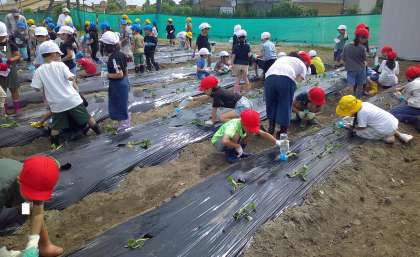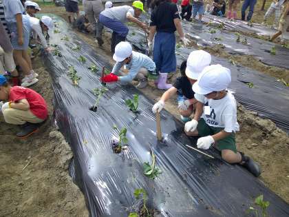 1年生 サツマイモの苗植え 公開日 2024/05/23 更新日 2024/05/23 1年生 1年生と2年生でサツマイモの苗を植えました。 老人クラブの方に教えていただきながら、丁寧に苗を土の中に埋めていました。 おいしいサツマイモができるのが楽しみです。