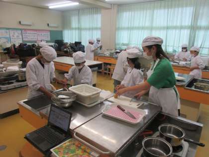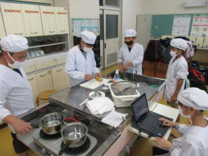 調理実習を行いました。グループで協力して、器具を準備しました。