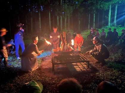 燃え上がる火をじっくり眺め、その美しさや暖かさを感じながら、仲間と楽しい時間を過ごしました。