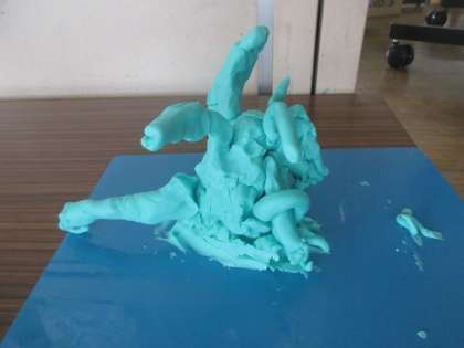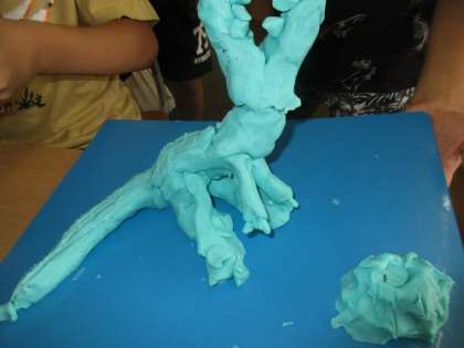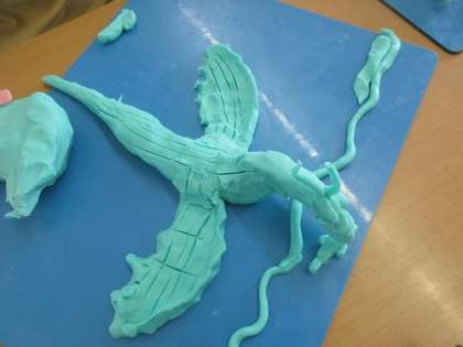 粘土で「切ってかきだしてくっつけて」を楽しみました。それぞれに工夫したお気
