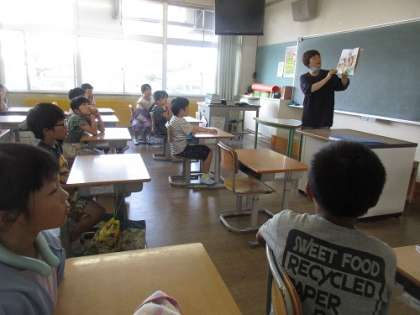 読み聞かせボランティアの方による、2回目の読み聞かせがありました。おもしろいお話なので、真剣に聞きました。