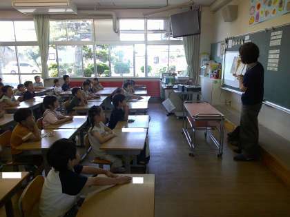 読書ボランティアの方による読み聞かせがありました。 こげパンがピクニックに行くお話を真剣に聞きました。
