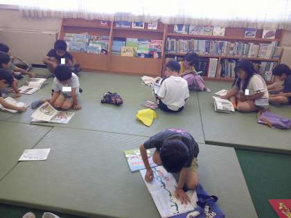 1年生 図書室の利用 公開日 2024/06/14 更新日 2024/06/14 1年生 毎週金曜日には、クラスみんなで図書室へ行き、本を借りています。本を借りた後は、思い思いの場所で読書を楽しんでいます。