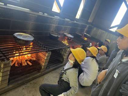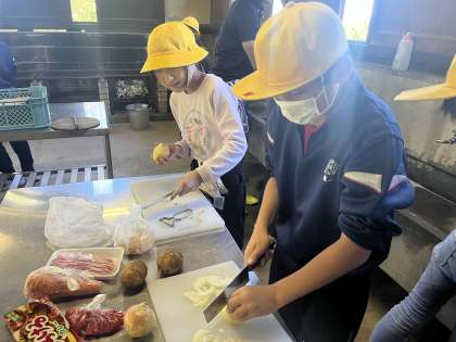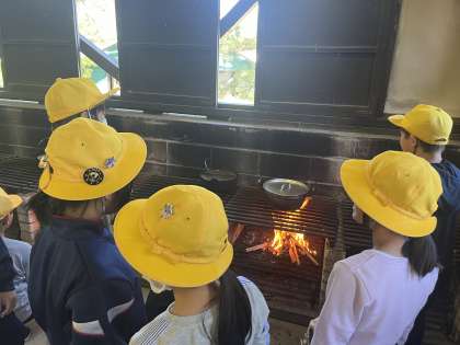 野外炊飯が始まりました。 各班で協力してつくっています。