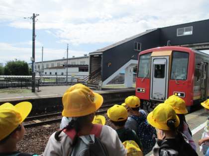 2年生は、富山駅南図書館へ見学に行ってきました。高山本線で千里駅から富山駅まで電車で向かいました。子供たちは電車が近付くと、「うわぁ!楽しみ!」とわくわくさせながら乗りました。