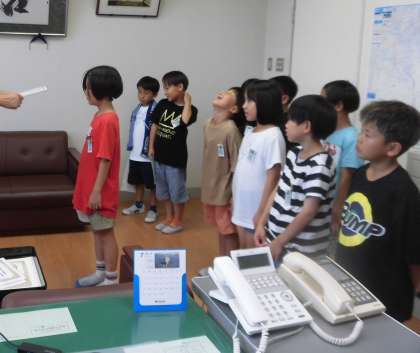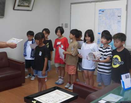 校長室で受賞伝達を行いました。 サッカーの2年生大会で優勝をしました。 がんばりましたね!