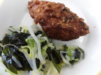魚はふくらぎでした。利久揚げとは、ごまをまぶしてから油で揚げたものです。カリッとしていました。