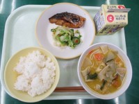 7月22日(月) 今日の給食 公開日 2024/07/22 更新日 2024/07/22 今日の給食 今日の献立は、ごはん、ちくわの磯辺揚げ、はりはりソテー、鶏肉とじゃがいもの南蛮煮、牛乳です。 南蛮煮の上には、かわいいにんじんのネコがのっていました。一味唐辛子と味噌の味がしみこんでいます はりはり和えは、シャキシャキした切り干し大根ともやし、ベーコン、ピーマンがおいしいです。 ごちそうさまでした!