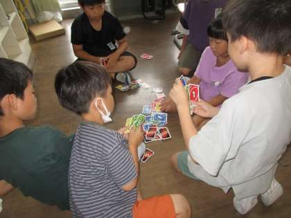 終業式が終わったあとの休み時間。みんな穏やかな気持ちで、楽しくやUNOやけん玉や積み木で遊びました。