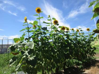 3年生 理科 ヒマワリ 公開日 2024/08/02 更新日 2024/08/02 3年生 猛暑の中、こんなにのびのびと大きくなった、3年生のヒマワリ。青空に向かって、3メートル近く伸びています。2学期が始まったら、種の学習をします。
