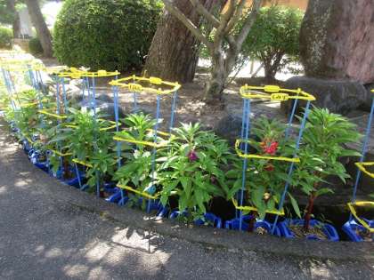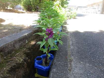 3年生 理科 ホウセンカ 公開日 2024/08/02 更新日 2024/08/02 3年生 ベランダの植木鉢の中で、ホウセンカを育ててきましたが、夏休みに入り、前庭の隅の「溝」の中に引っ越しました。大きな松の木の陰もあり、次々と元気に花を咲かせています。2学期までここで過ごします。