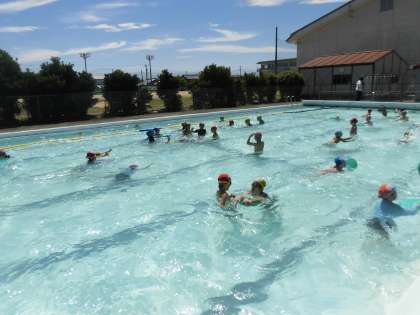 熱中症予防のため、時間を短縮してプール開放を行いました。 みんな、ルールを守って楽しく遊んでいます。