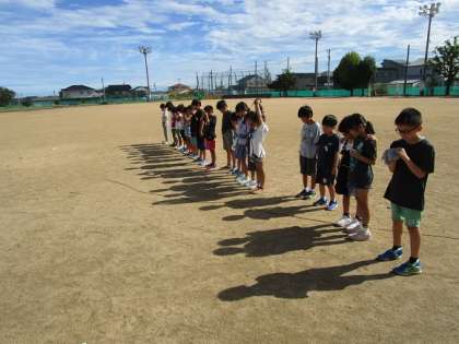3年生の国語科では「ちいちゃんのかげおくり」を学習しています。物語を読み、「先生!今日はかげおくりができそうな空です!」と提案する子供たち。物語にあるような青い空、クラスのみんなでかげおくりをしました。「ひとうつ、ふたあつ、みいっつ。」と数え、「とお。」と言ったとたんに空を見上げると、くっきりとかげおくりが見えました。
