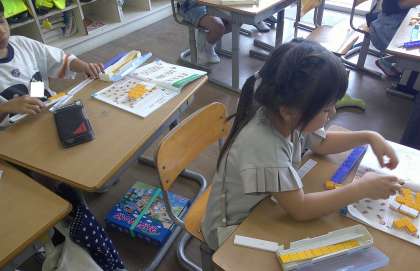 1年生 10より大きい数 公開日 2024/09/02 更新日 2024/09/02 1年生 算数科「10よりおおきいかず」で、どのようにドングリの数を求めたらよいかを学習しました。印を付けながら数えたり、10のまとまりを囲んだり、ブロックを使ったりしながら考えました。