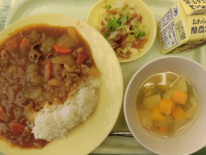 今日の給食 公開日 2024/09/03 更新日 2024/09/03 今日の給食 今日は、子供たちが待ちに待っていたカレーライスです。 福神漬けを白菜であえた福神あえもさっぱりしていてとてもおいしいです。 デザートのフルーツゼリーヨーグルトも大人気です。 今日もおいしくいただきました!