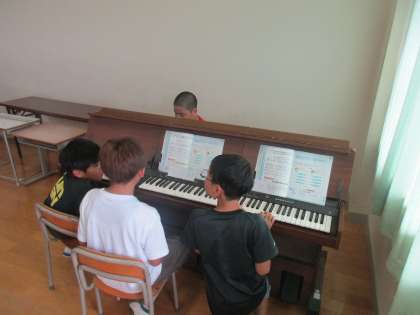 パート毎に分かれて、子供たちは話し合ったり、教えあったりしながら、楽しく練習に取り組んでいました。