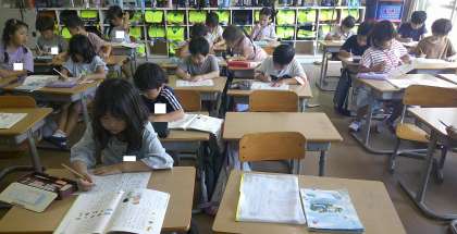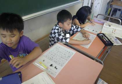 課題に取り組む際、誰と学ぶかを子供たちに提示し、「一人で」「友達と」「先生と」の中から選んで学習する場面を取り入れています。友達と学ぶことを選ぶ子供が多いのですが、どの子も集中して、「分かるようになりたい」とやる気をもって取り組んでいます。
