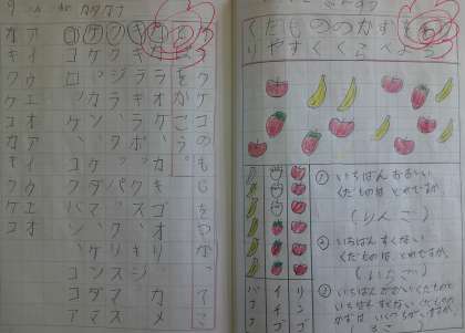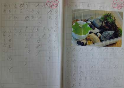 1週間に4ページ、1ヶ月に16ページを目標に自主学習ノートに取り組んでいます。今日提出した自主学習ノートには、カタカナの言葉を練習したり、生き物の世話についてまとめたりするなど、学校で学習したことを生かしている様子が見られました。