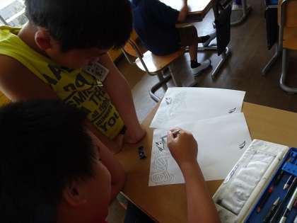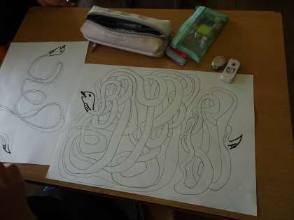 【4年生】 図画工作科「長いへびを重なりに気をつけてかこう」 公開日 2024/09/12 更新日 2024/09/12 4年生 「長いへびを重なりに気をつけてかこう」と、どれだけへびの体を長く描けるかに挑戦しました。 自分なりの工夫をこらしたり、友達同士で見合ったりしながら、粘り強く取り組み、素敵な作品が生まれました。