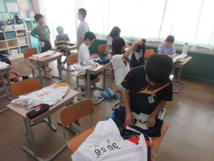 【6年生】明日はチャレンジ陸上記録会 公開日 2024/09/12 更新日 2024/09/12 6年生 明日のチャレンジ陸上記録会に向けて、ゼッケンや腰番号を体育服に付ける作業をしました。 互いに手伝い合って、まっすぐになるようにがんばりました。
