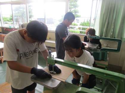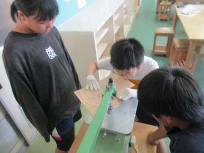 5年生 図工「糸のこスイスイ」 公開日 2024/09/19 更新日 2024/09/19 5年生 二人で協力しながら作業しました。 曲線を切ることは簡単ではありません。 しかし、子供たちは予想以上に上手に切ることができていました。