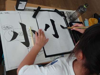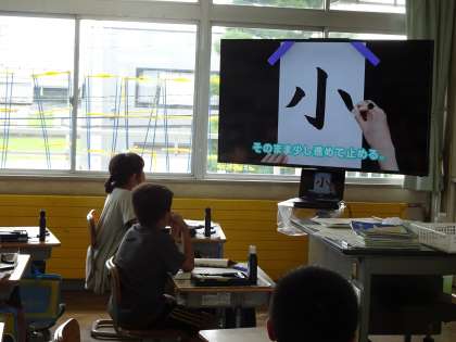 教科書を見てポイントを確認した後、動画も見ました。自分で書いてみると「思ったより難しいな」「でも、うまくできた!」などの声が聞かれました。