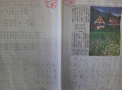1年生 自主学習がんばっています6 公開日 2024/09/24 更新日 2024/09/24 1年生 今週の自主学習では、学習の復習に配付したテストの答えを使っていたり、興味のある新聞の切り抜きを貼ったり、学習発表会のせりふを書いたりしていた子もいました。いろいろな工夫が見られ、すごいなあと思っています。