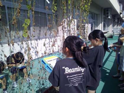 理科の活動で、植物や動物の観察を行いました。夏と比べて、秋になるとどのような変化があるか自分の見たいものを決めてじっくり観察しました。育てているヘチマを観察すると、種を見つけ、とても嬉しそうにしていました。