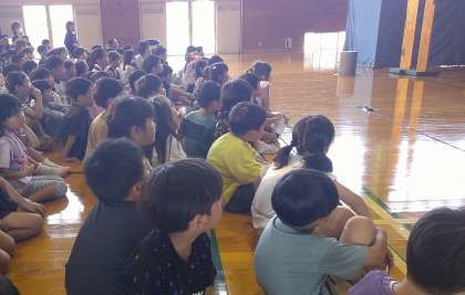 劇団の方による「やだ、やだ、あっかんべー!!」の劇を見ました。子供たちは、劇団の方の表現力豊かな台詞や動きに、喜んだり、驚いたりしていました。
