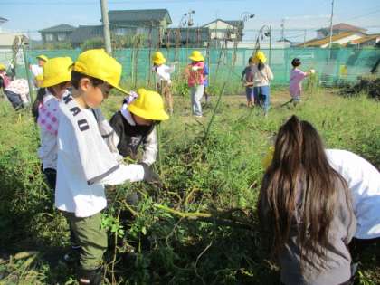 今日は、1学期から大切に育ててきた野菜の畑を片付けしました。みんなで草取りをしたり、マルチを剥がしたりするなど、来年の2年生のために暑い中ではありましたが、一生懸命動く姿がみられました。