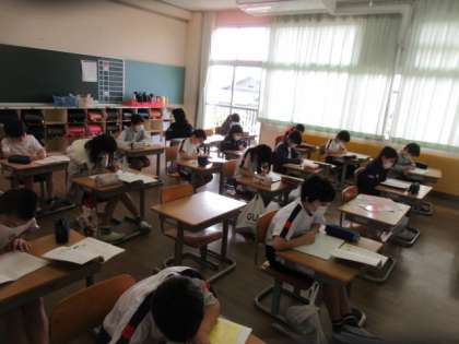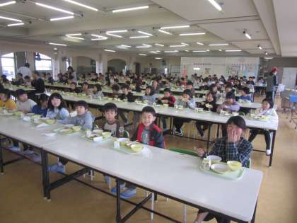 また、給食も始まりました。久しぶりのおいしい給食を食べることができました。コロナウィルス感染対策で、向かい合って食べることを避けています。