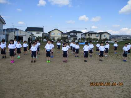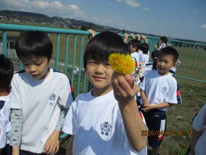 グラウンドに出て、初めて50mを走りました。「楽しい!」「もう一回したい!」とやる気いっぱいの1年生でした。初めは寒がっていた子もポカポカの太陽と一生懸命走ったことで「暑いくらいになった!」と嬉しそうに報告してくれました。1組と2組で、桜の前で記念撮影もできました。
