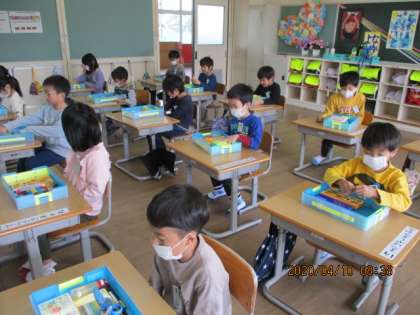 【1年生】ピカピカのお道具箱 公開日 2020/04/10 更新日 2020/04/10 1年生 今日は初めて自分のお道具を持ってきました。「重ねて引き出しとして使うんだよ」と話すと「おお!」と感動し、ピカピカの色鉛筆に目を輝かせていました。これからこの道具を使ってたくさんの勉強をしていきましょうね。