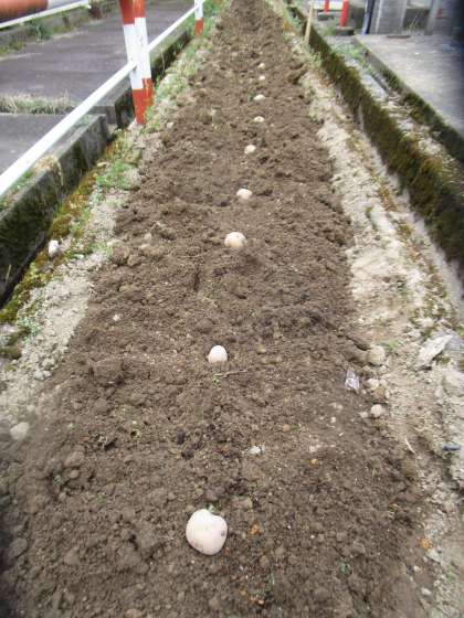 肥料を入れ、種芋に土をかけました。みなさんが、おいしいご飯を食べて、ふかふかの布団で寝るのと同じです。