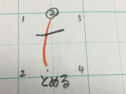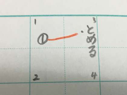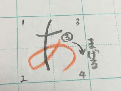 こうさしたら まるく まげて ゆっくりと はらいます。