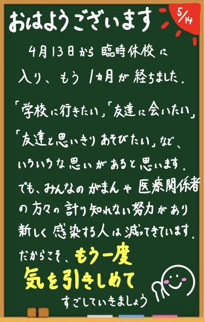【5年生】1ヶ月が経ちました 公開日 2020/05/14 更新日 2020/05/14 5年生 おはようございます。健康に気をつけて、今日も計画的に学習を進めましょうね。社会の都道府県名プリント、漢字で、正確に書けるかな?4年生の復習です、レッツチャレンジ!