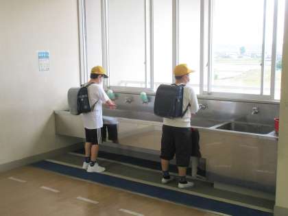 【5年生】分散登校スタート 公開日 2020/05/25 更新日 2020/05/25 5年生 今日から分散登校が始まり、西方面の子供たちが登校してきました。久しぶりに顔を見ることができてうれしかったです。 登校してすぐ、子供たちは手洗いをしています。自分の健康を守ることはもちろん、友達や家族の健康を守ることも意識していきましょうね。 明日登校する東方面の皆さんも、登校後は手洗いをして教室に入ってくださいね。