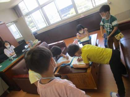 探検では、不思議なもの、驚いたもの、古いものなどたくさんのものを発見してきました。発見したものは教室で発見カードに書いてみんなに発表しました。